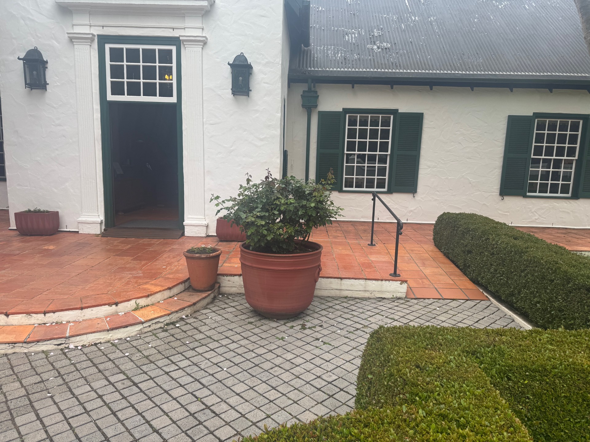 Front building entrance exit stairs and ramp