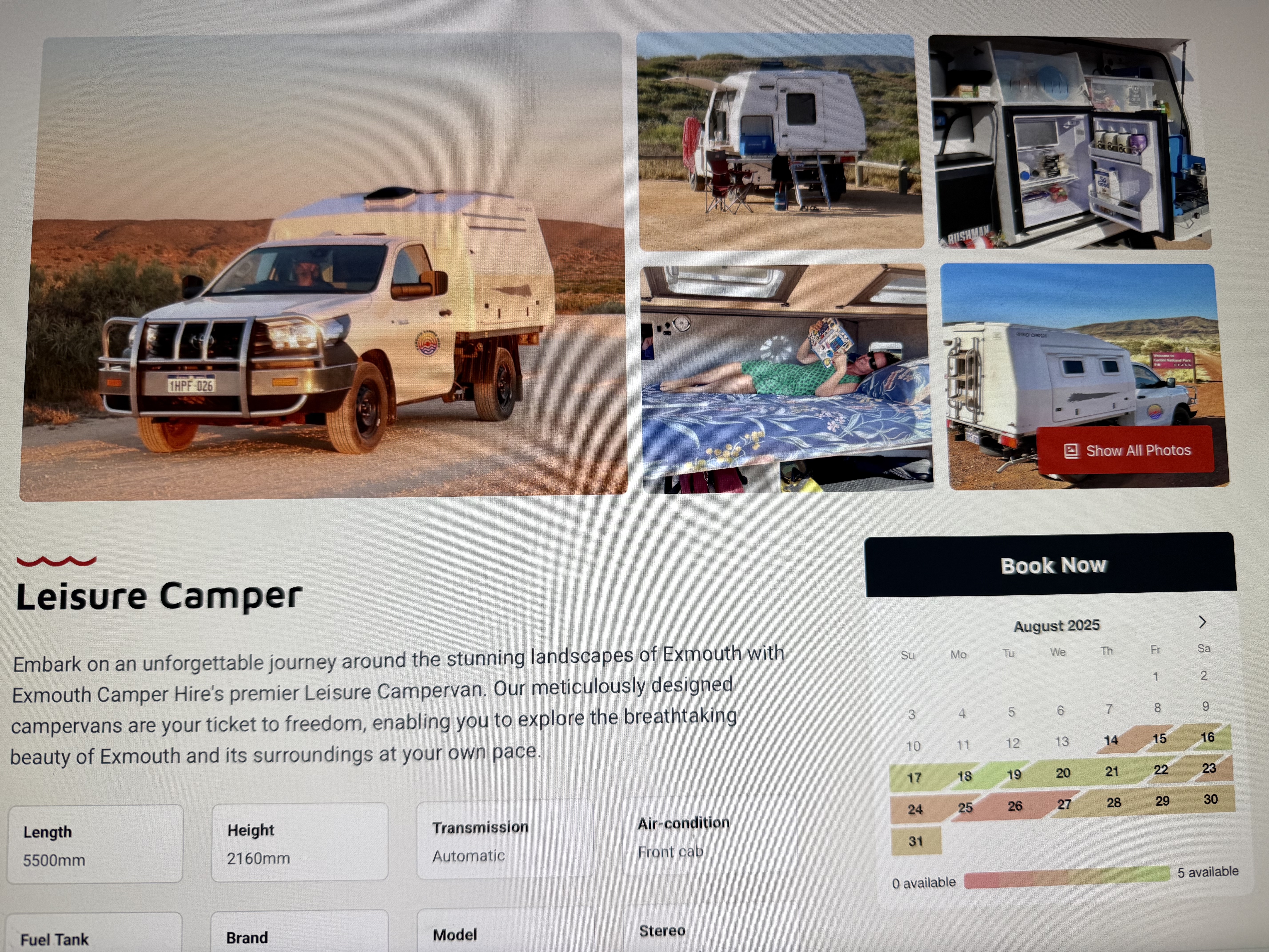 Exmouth Camper Hire developed a new web site in May 2024 which is proving to be very user friendly and secure way to book a Camper Van experience. We use instructional videos with English subtitles to showcase each Camper Van. Our office is also available to receive any calls with queries, plus are very responsive to emails, and active with social media/google account messages.