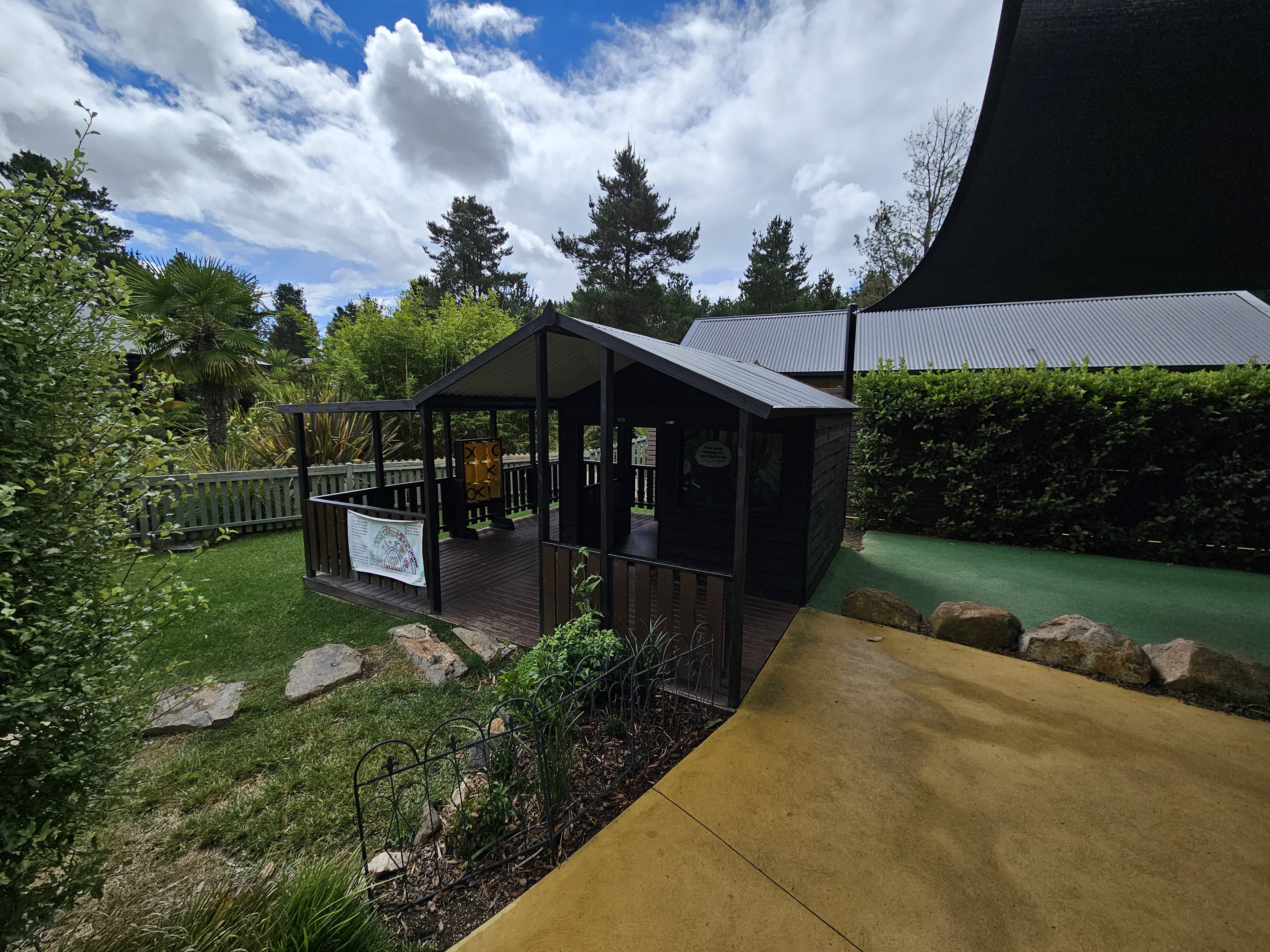 The play space contains cognitive play panels
