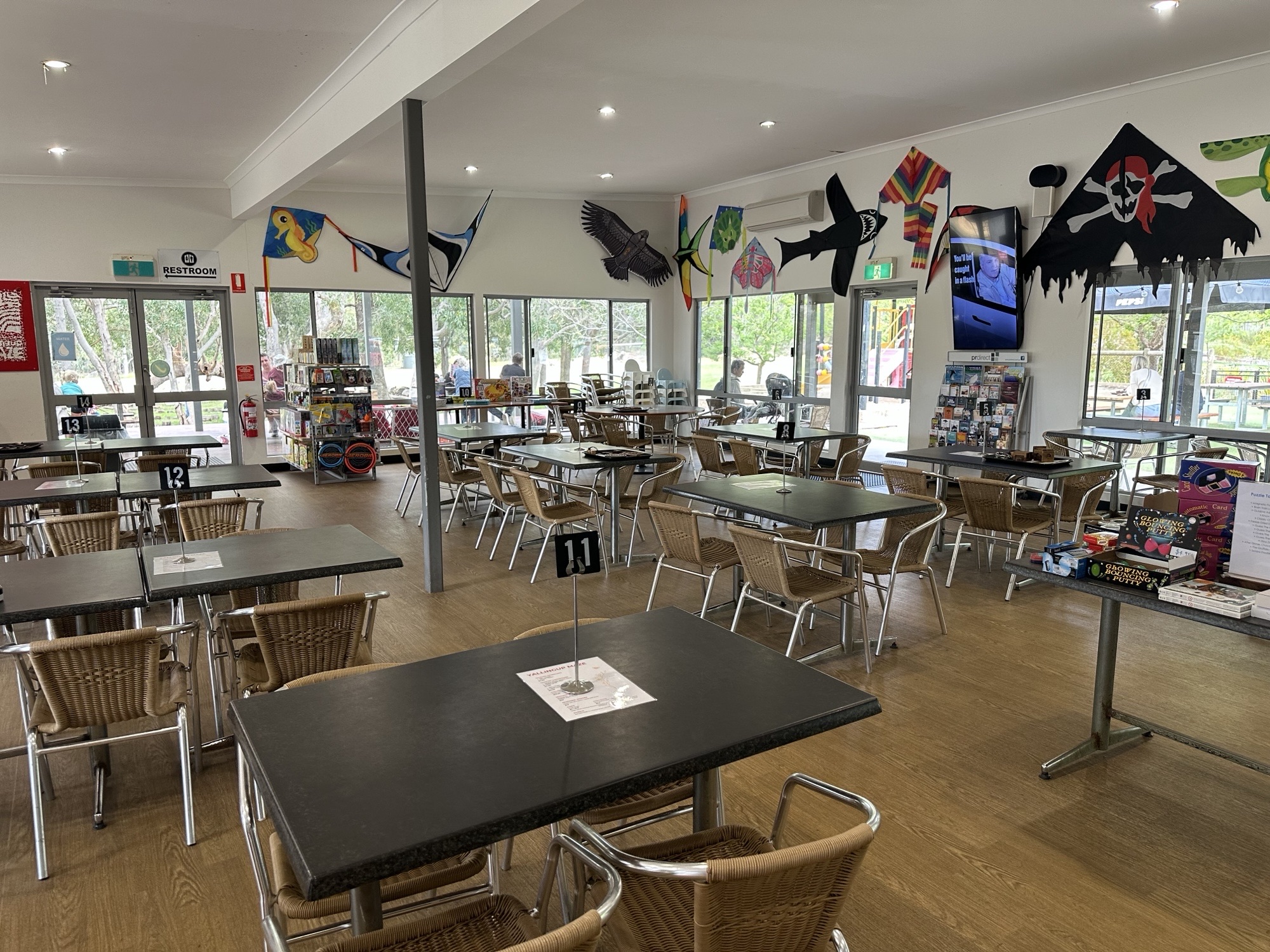 During busy periods, guests can relax in the café’s indoor or outdoor seating and approach the front counter at their convenience.