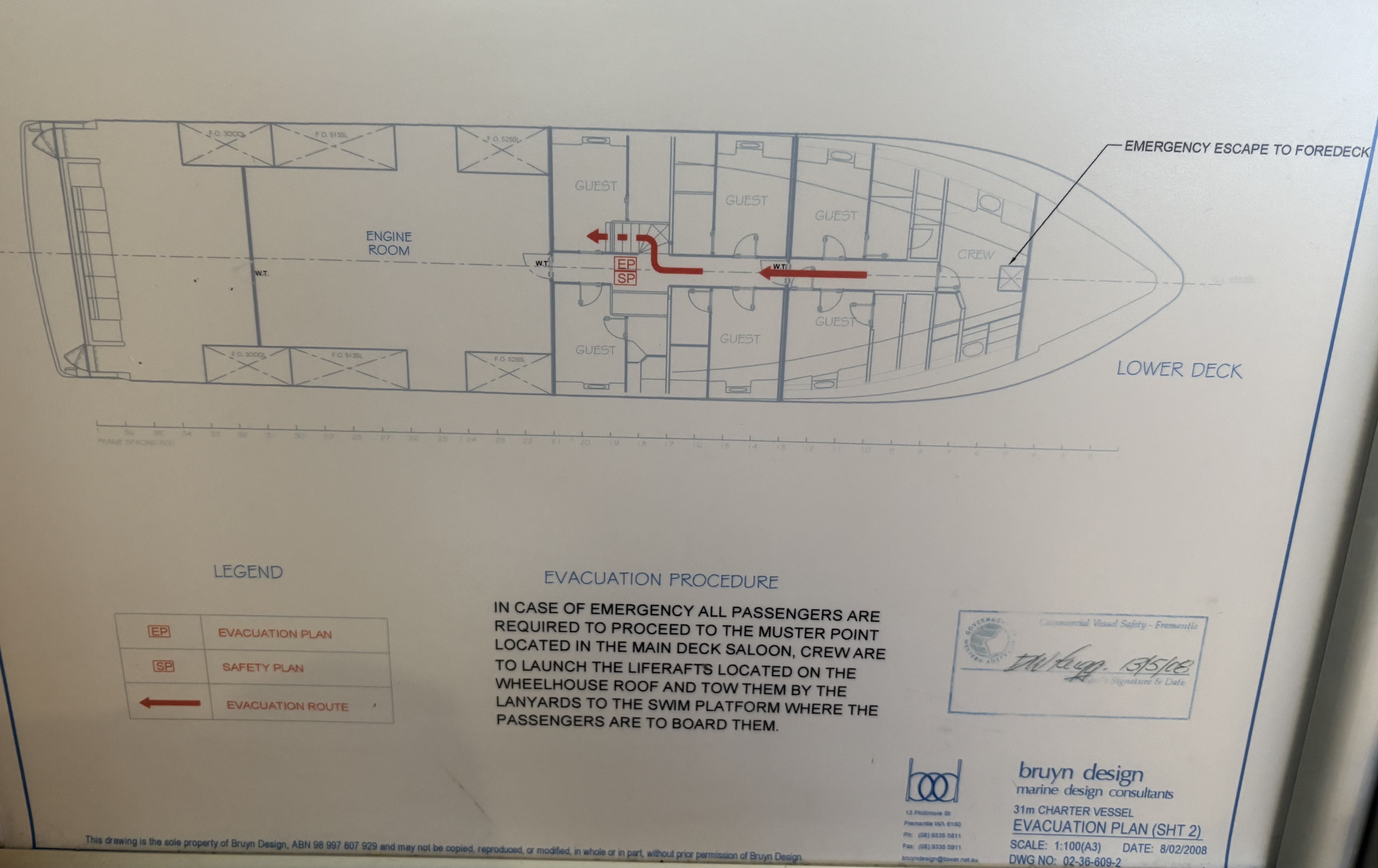 In the event of an emergency all guests are escorted out of their cabins to the muster point by a crew member.