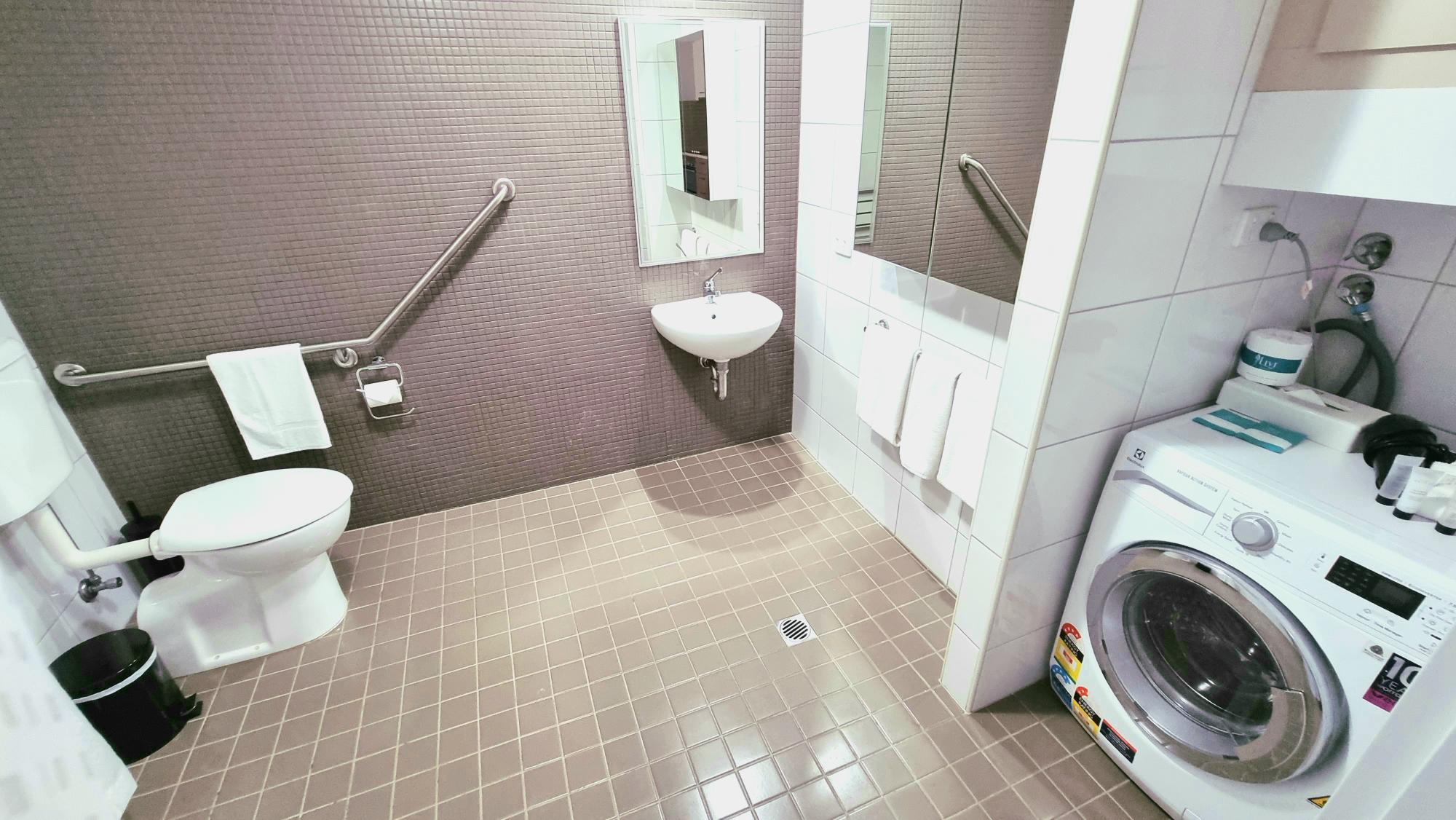Accessible bathroom with laundry facilities Accessible 1 bedroom apartment