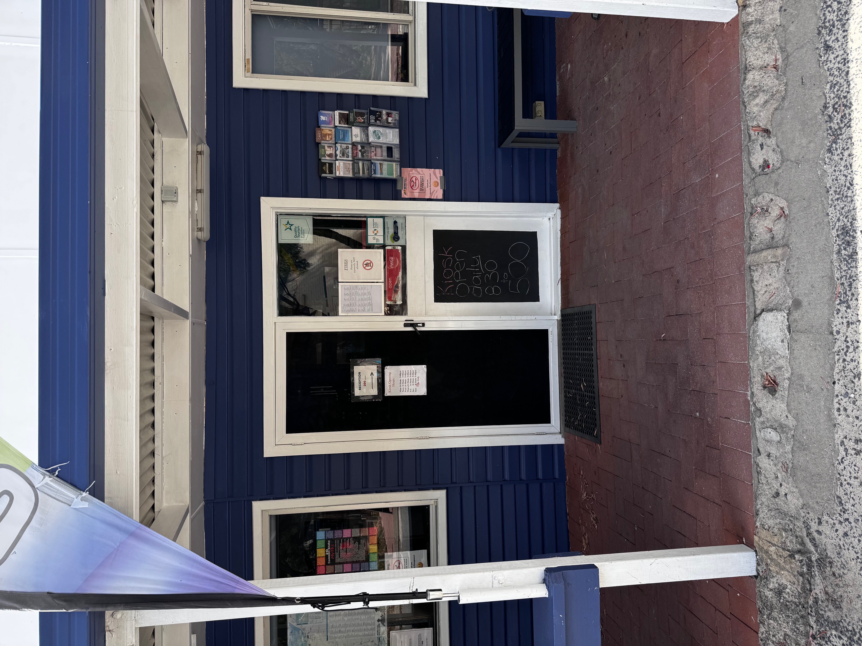 All glass doors and full height windows have contrast markings