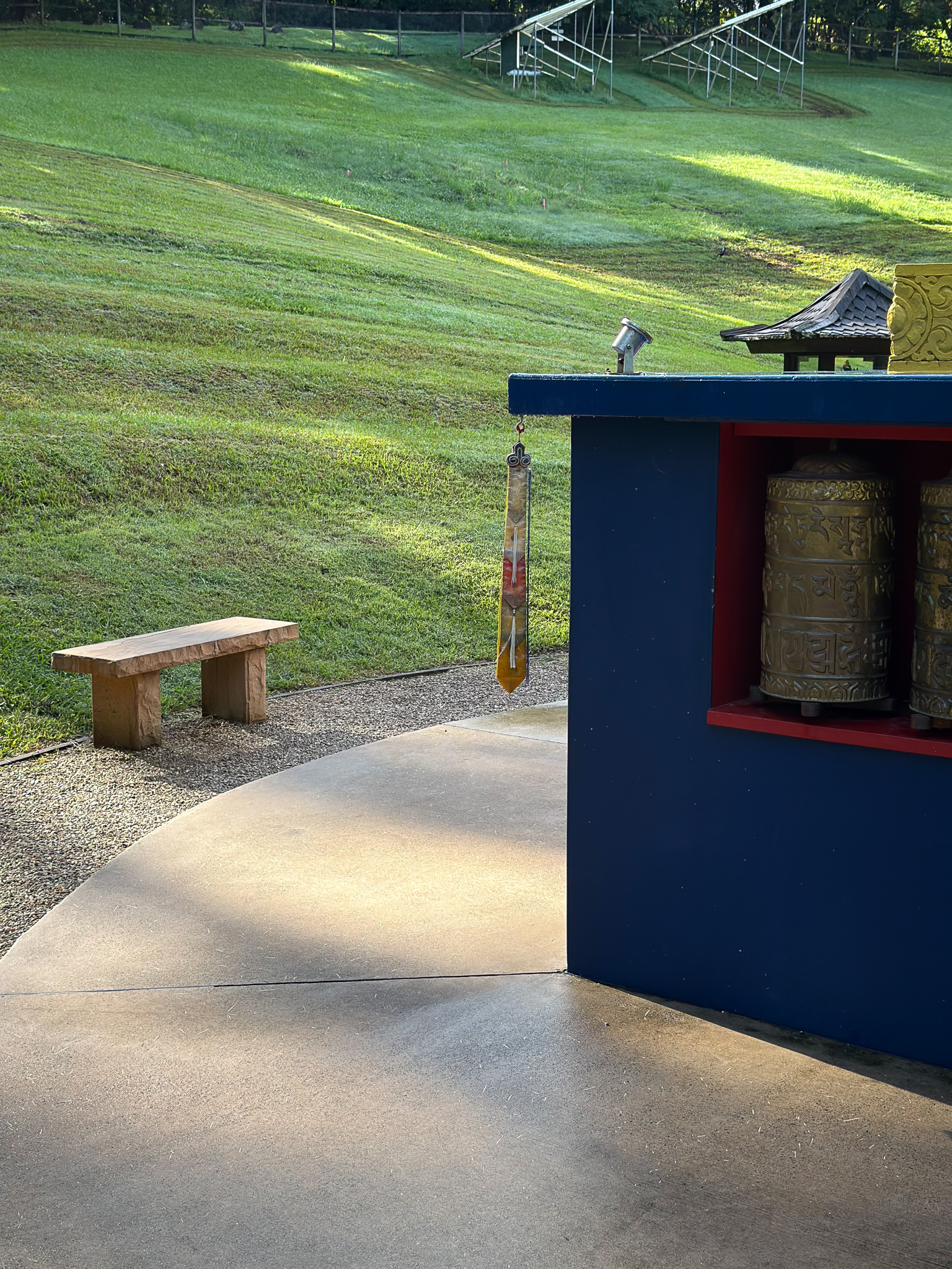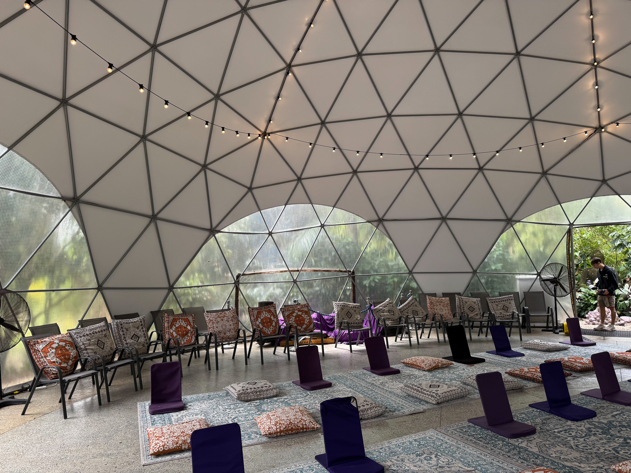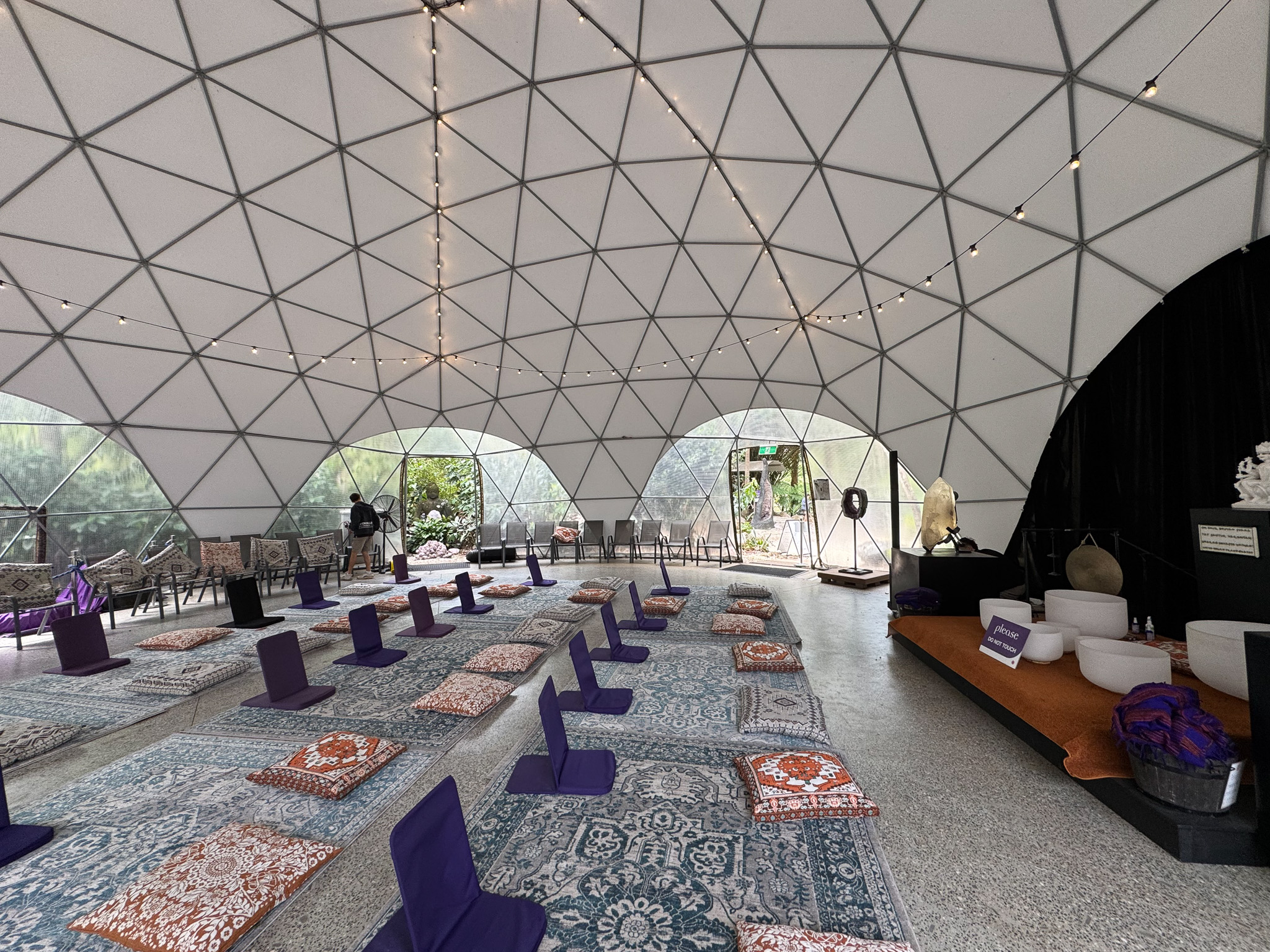 Wait times at entry rarely exceed 10 minutes, even on our busiest days. Our Welcome Hut provides a shaded, covered waiting area. Seating is available at multiple rest points throughout the grounds, including the Welcome Hut, Lotus Café, Peace Dome, and along our accessible pathways. The site is self-paced with no timed or queued attractions, so guests can rest as needed and take as long as they wish to explore.
