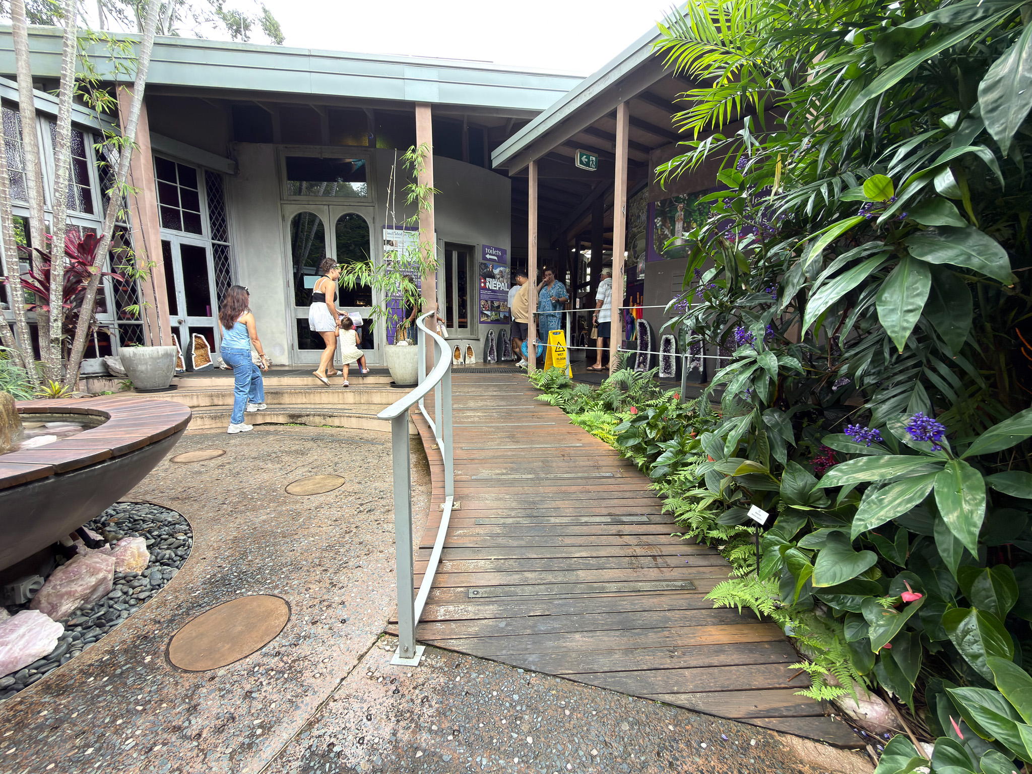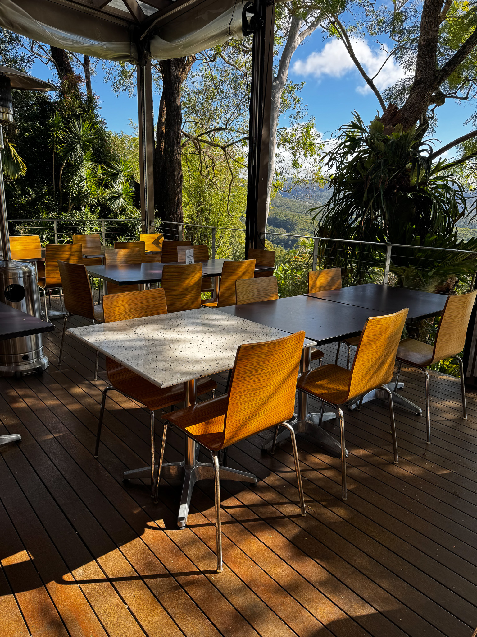 Our observation area is the Lotus Café deck, which offers elevated views across the Byron Bay hinterland. The deck is accessible via our sealed pathway and ramp system. Safety railing is fitted along the deck perimeter. There are stairs below the Lotus Café with a railing for the primary section.