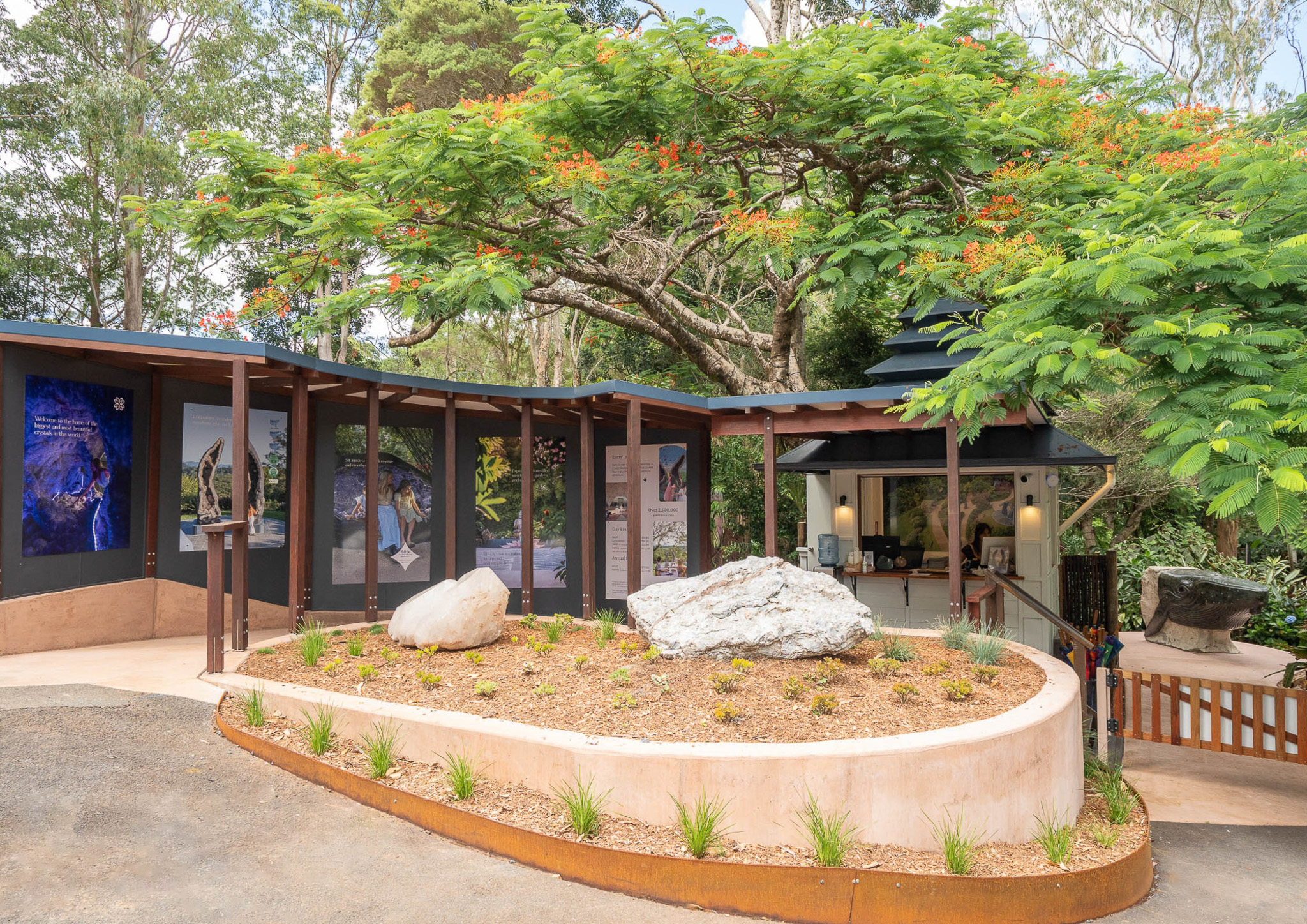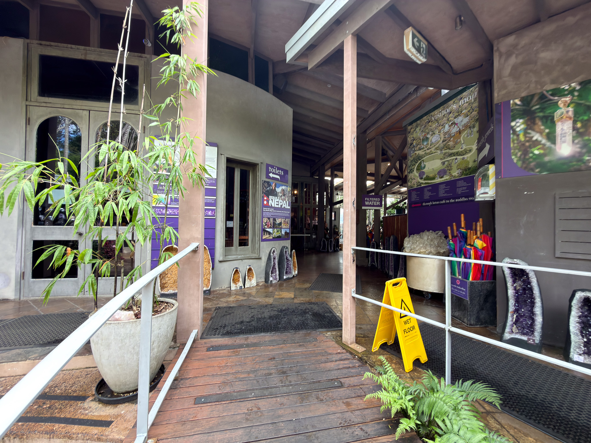 The main entry to Crystal Castle is through the Welcome Hut, which has sealed access from the adjacent car park and drop-off zone. The path from the accessible parking bays to the entrance is sealed asphalt, slip resistant, and free of obstructions.