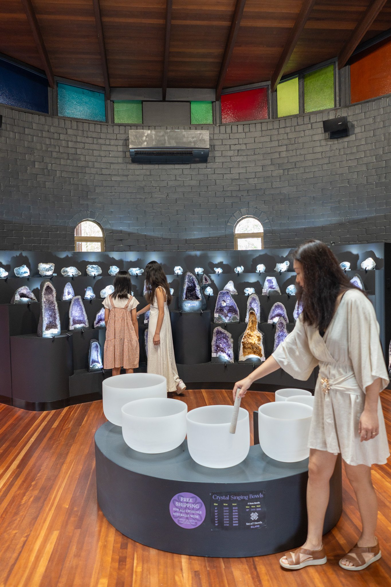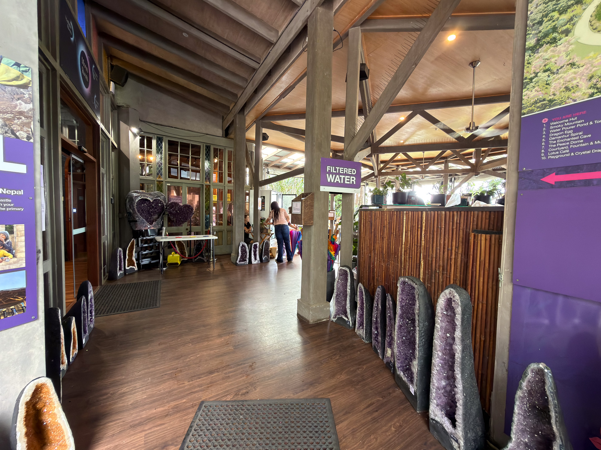 Crystal Castle is a self-guided, self-paced experience. There are no queues for individual attractions and guests are free to move at their own pace throughout the day. Our facilitated experiences such as Crystal Singing Bowls and Crystal Meditation are held in the Peace Dome, which has seating and is accessible via our sealed pathway. Guests who experience fatigue are welcome to speak with staff at the Welcome Hut, who can advise the shortest accessible route to any attraction. Complimentary umbrellas are also available for sun and rain protection throughout your visit.