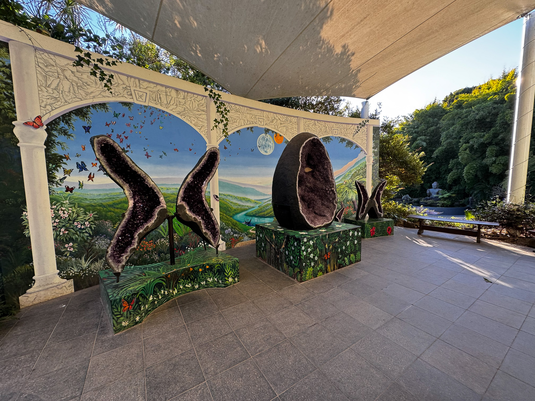 Crystal Castle is situated on the side of a mountain in the Byron Bay hinterland. We built over nearly one kilometre of sealed concrete pathways in 2024 and 2025, providing access to many of our key attractions including the Buddha Walk, Blessing Buddha, World Peace Stupa, Giant Treasure Chest, Crystal Labyrinth, Peace Dome, Lotus Café, and Castle Jewels. Due to our hillside location, some sections of pathway exceed a 1:14 gradient. All steep sections are clearly signed so guests can make informed decisions about their route. Seating and rest areas are provided at regular intervals along the accessible route. Some secondary garden paths are gravel or stepped, and the Bamboo Avenue and Rainforest Walk are accessible by stairs only. We are currently working on improved wayfinding signage to clearly identify step-free routes and to mark stepped paths as non-wheelchair accessible. Guests are welcome to ask staff at the Welcome Hut for guidance on the most suitable route for their needs, and we provide a free Accessibility Map printout to all guests with mobility difficulties.
