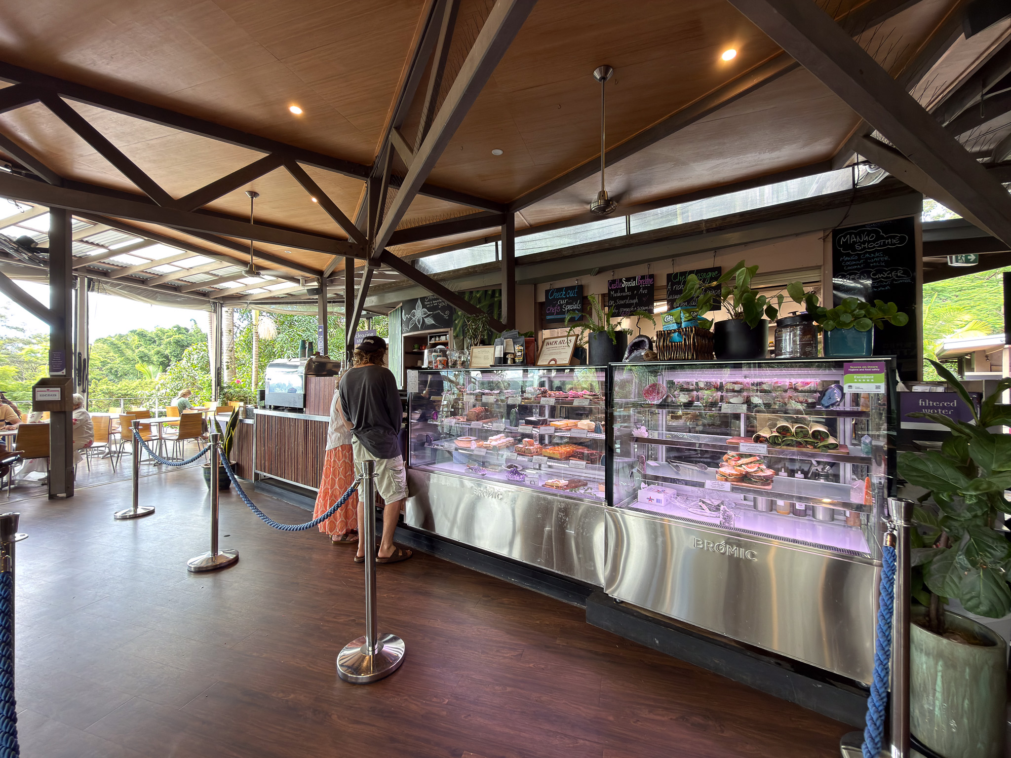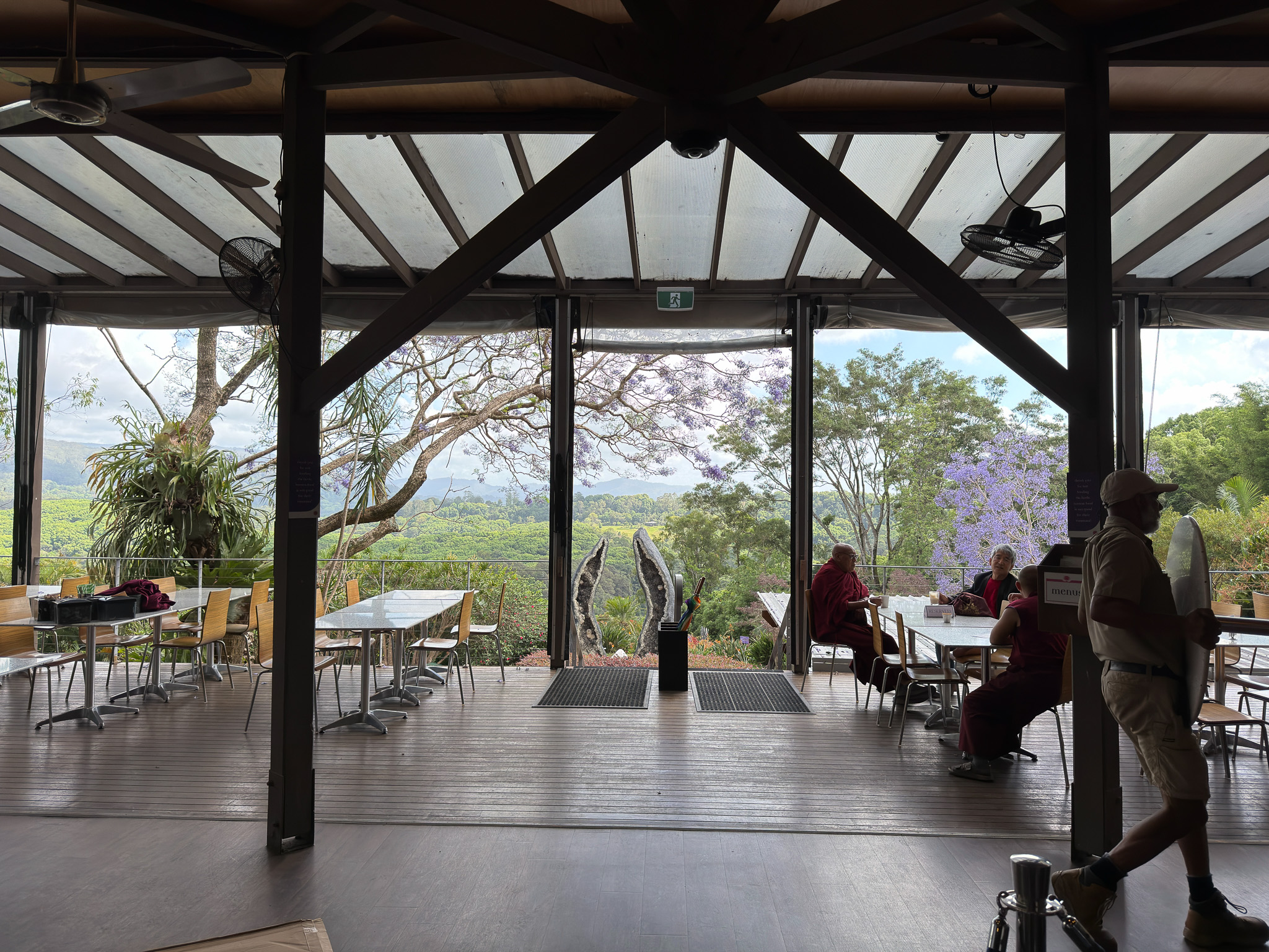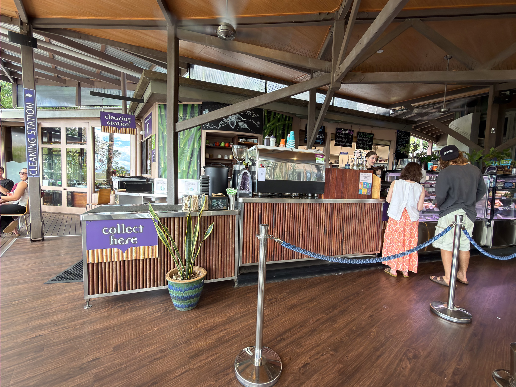 The Lotus Café offers a seasonal plant-based menu with vegetarian, vegan, sugar free, and dairy free options clearly labelled. The café is accessible via our sealed pathway with level access at the entrance and throughout the dining area. Chairs are moveable to accommodate wheelchair users at all tables. The café deck provides elevated views across the Byron Bay hinterland and is accessible via ramp. Guests with specific dietary requirements or severe allergies are encouraged to speak with our team on arrival.